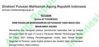Putusan Mahkamah Agung Republik Indonesia No. 67 P/HUM/2022